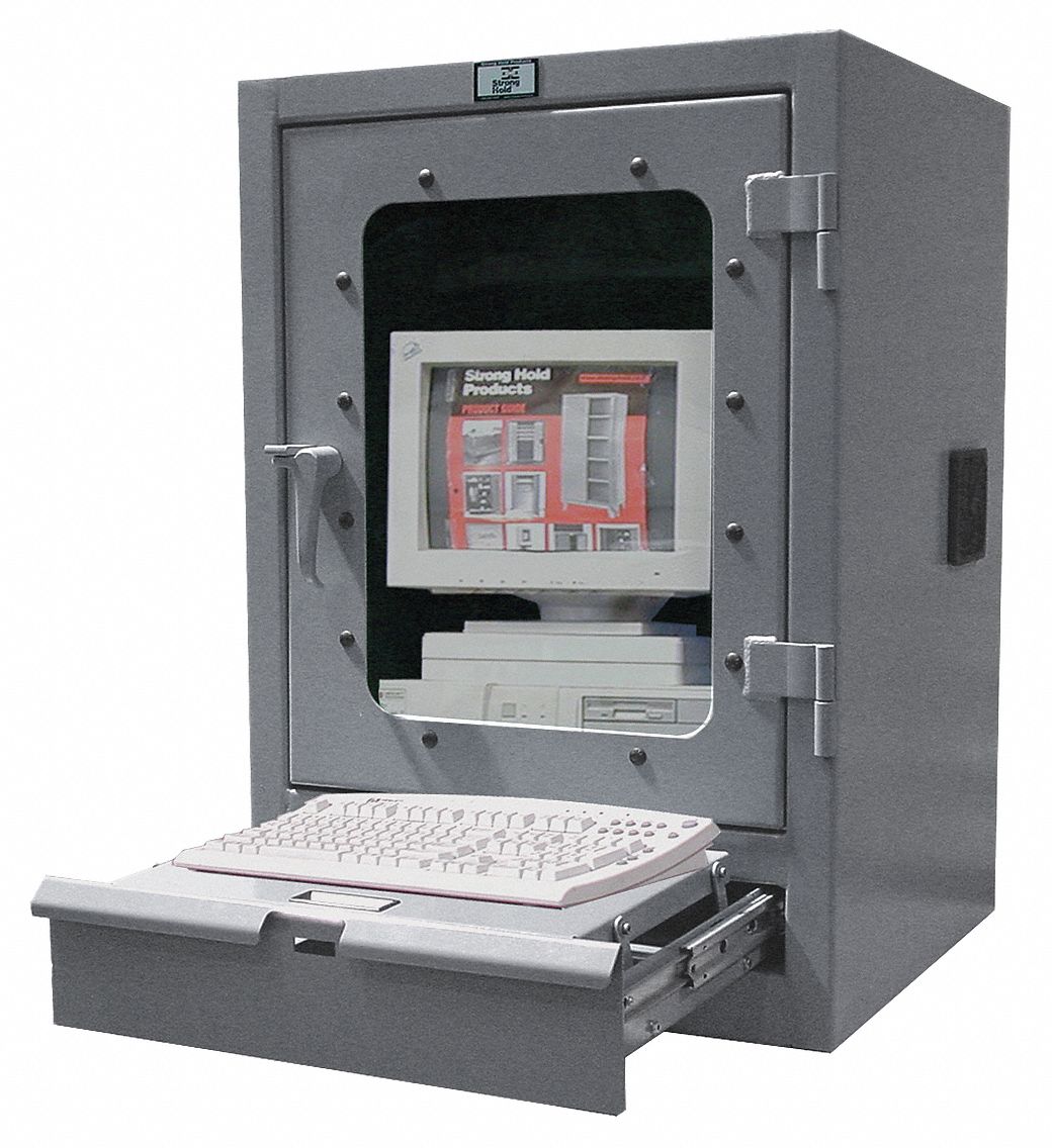 LCD Console Counter Top Security Computer Cabinet, Gray, 24-1/2"W x 22-1/2"D x See more like this Belkin Secure And Charge Tablet Computer Cabinet - 11.9" Height X 17.5" Width X 18.8" Depth - Desktop - Metal (b2b117) ... View Full Source